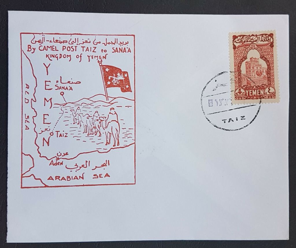 ظرف غیر مستخدم يحمل کاشیت بريد الجمال من تعز الى صنعاء 1962