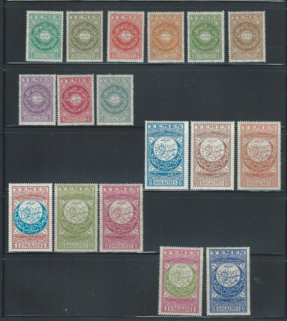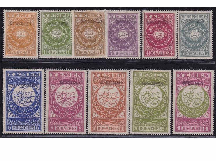 أول وثأني طابع بريدي يمني تمت طباعتهم كانا في عام ١٩٣٠/١٩٣١ أي بعد الإلتحاق بالاتحاد و تمت طباعتهم في SPICMENمطبعة في برلين في ذالك الوقت وبعد الطباعة جرت العادة في إرسال مجموعة الطوابع موشحة ب