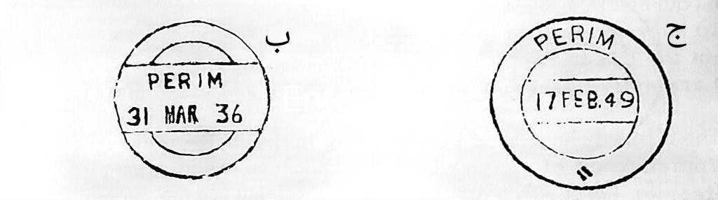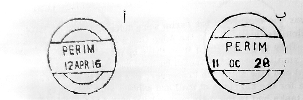 استعمل من عام ١٩١٥وحتى ١٩٢٠Perim آ-ختم يحمل التاريخ واسم