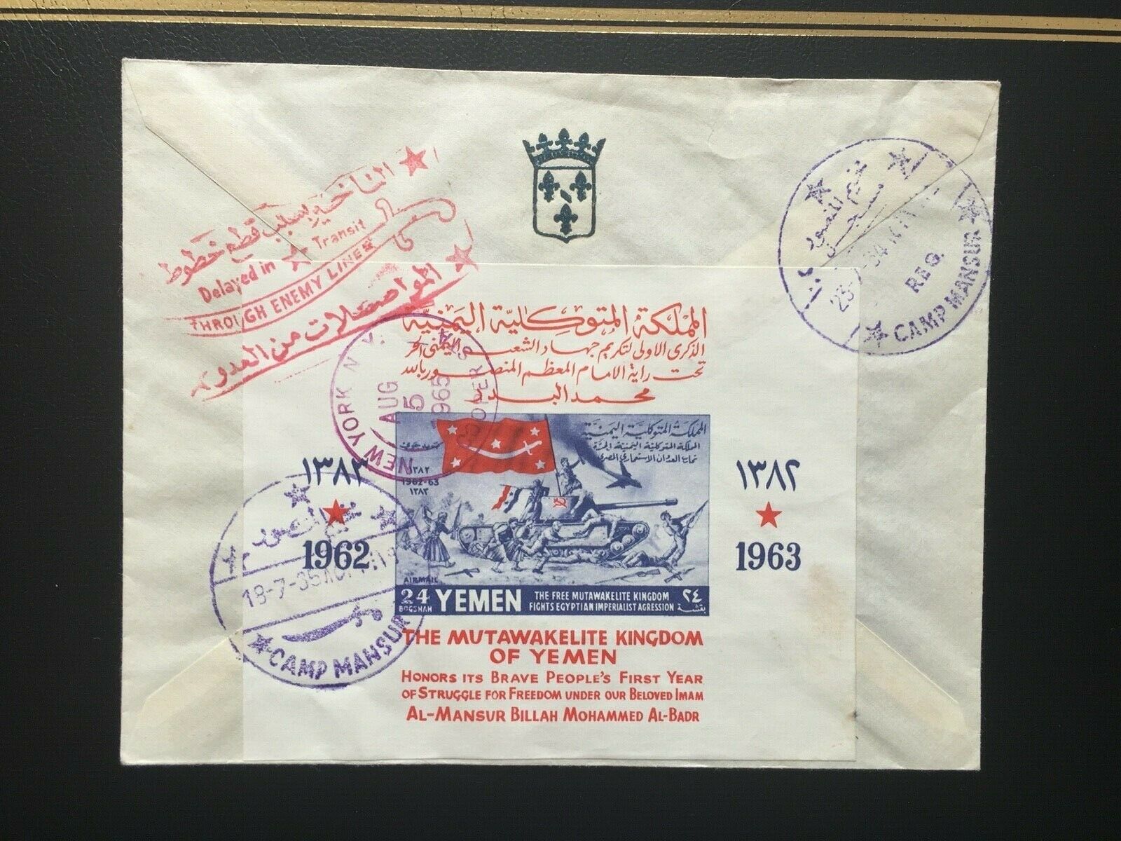 وفي هذه الأثناء لم يكن جمال عبدالناصر غافل عن هذه الإصدارات والغرض منها ، وفي ديسمبر من عام 1964م قام عبدالناصر بالضغط على الحكومة اللبنانية ومنعها من طباعة أي طوابع بريد و أظرف جويه للإمام فقام بروس کنده بالتواصل معى مطبعة Harrison &Son في المملكة المتحده لطباعة اظرف جويه مسافره ، إلا أن هذه الطلبيه تأخرت لظروف الحرب مما أضطر بروس للجوء الى مطبعة دار الأصفهاني في جده وتم طباعة 5000 مغلف لسد العجز الناقص في المغلفات . ( يلحق إن شاء الله مقال أخر عن تاريخ المغلفات والايرو جرام للمملكة المتوكلية ). بالإضافه قامت مصر بالضغط على الدول العربيه ومنعها من ان تنقل اي ظرف أو مغلف يحمل توشيح ” اليمن الحره