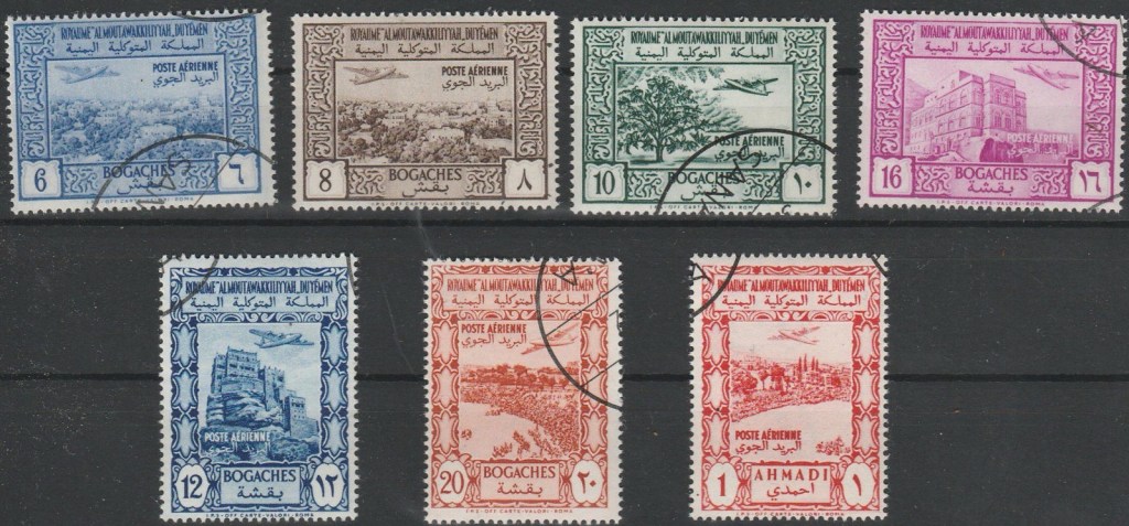 في الأول من أغسطس من عام ١٩٥١م تم طباعة اول مجموعة للملكة المتوكلية في إيطاليا واللتي كانت مكونة من ١٧ طابع ، منها ١٠ طوابع عادي و ٧ بريد جوي