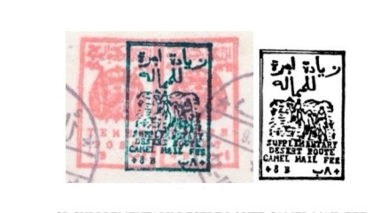 يعود فضل هذه الفكرة الى رئيس قسم البريد في الجوف حينها الشيخ غالب الحرازي والذي كان يجيد اللغة الإنجليزية ويعتبر من اللذين تركوا بصمة في تاريخ البريد اليمني بعد بروس كنده فقام بتصميم ختم مستطيل الشكل أعلاه كتب ” زيادة أجره الجماله” يتوسطه رسم لثلاث لثلاث كرافانات جمال تقطع صحراء الربع الخالي واسفلها كتب
