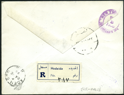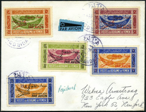 رغم ان المصادر تؤكد ان هذه المجموعه لم تصدر بشكل رسمي الا انها بطريقه او بأخرى وجدت طريقها على اظرف مسافره ، هذا مثال على ظرف مسافر من الحديدة عن طريق تعز الى عدن وصولا الى نيويورك ، ويعتبر من الاظرف القليله التي وثقت استخدام هذه الطوابع على اظرف مسافره، يظل اغلب الاعتقاد ان الاختام صحيحه ولكن تم ختمها من قبل هواه .
