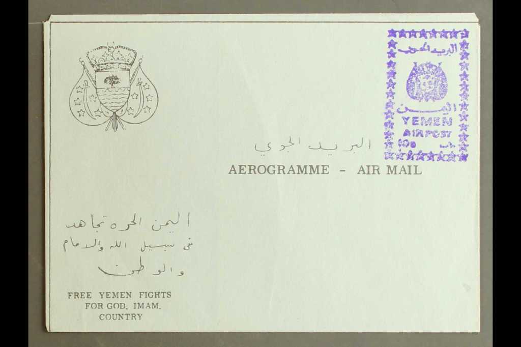 ومعى اشتداد المواجهات بين البدر والجمهوريين بدات الايروجرام تنفذ من الملكيين وفي عام ١٩٦٦م تم اصدار ايروجرام محلي ووضعت القيمة بشكل حتم ١٠ بقشه ، وفي بعض الاحيان كانت تلصق طوابع يدوية ويتم تعديل قيمتها بختم اسفل الطابع . ظهرت ايروجرام بالوان ورق متعدده منها الورق الاخضر الفاتح والابيض.